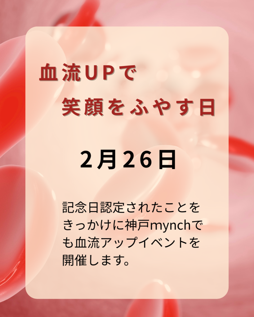 2月26日 【血流UPで笑顔をふやす日】が 記念日として認定されたことをきっかけに、 神戸でも血流アップイベントを開催します。